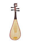月琴音箱呈滿圓形,琴脖短小。全長(zhǎng)62、音箱直徑36.3厘米。 琴頸和音箱邊框用紅木、紫...