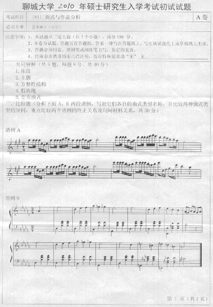 【聊城大學(xué)音樂學(xué)院更多考研試題】