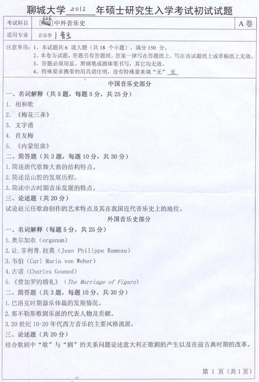 【聊城大學(xué)音樂學(xué)院更多考研試題】