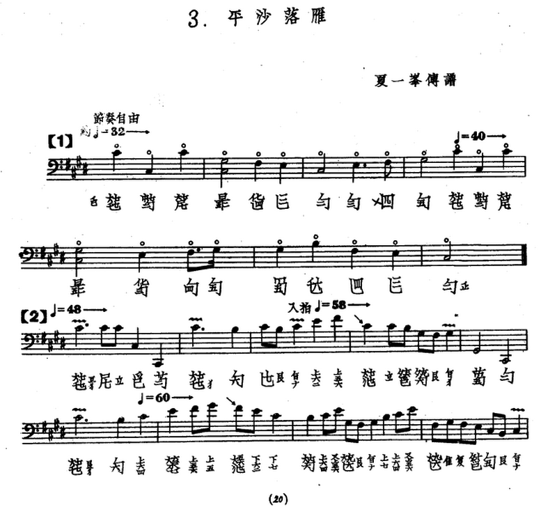 古琴曲譜:《平沙落雁》